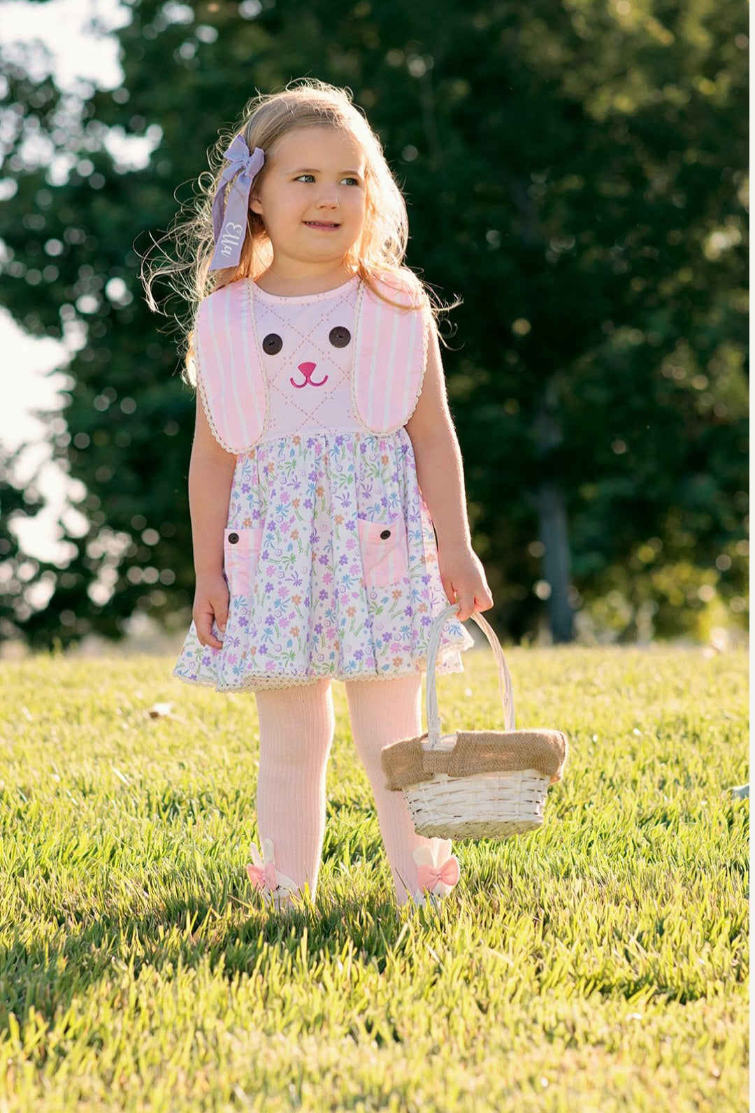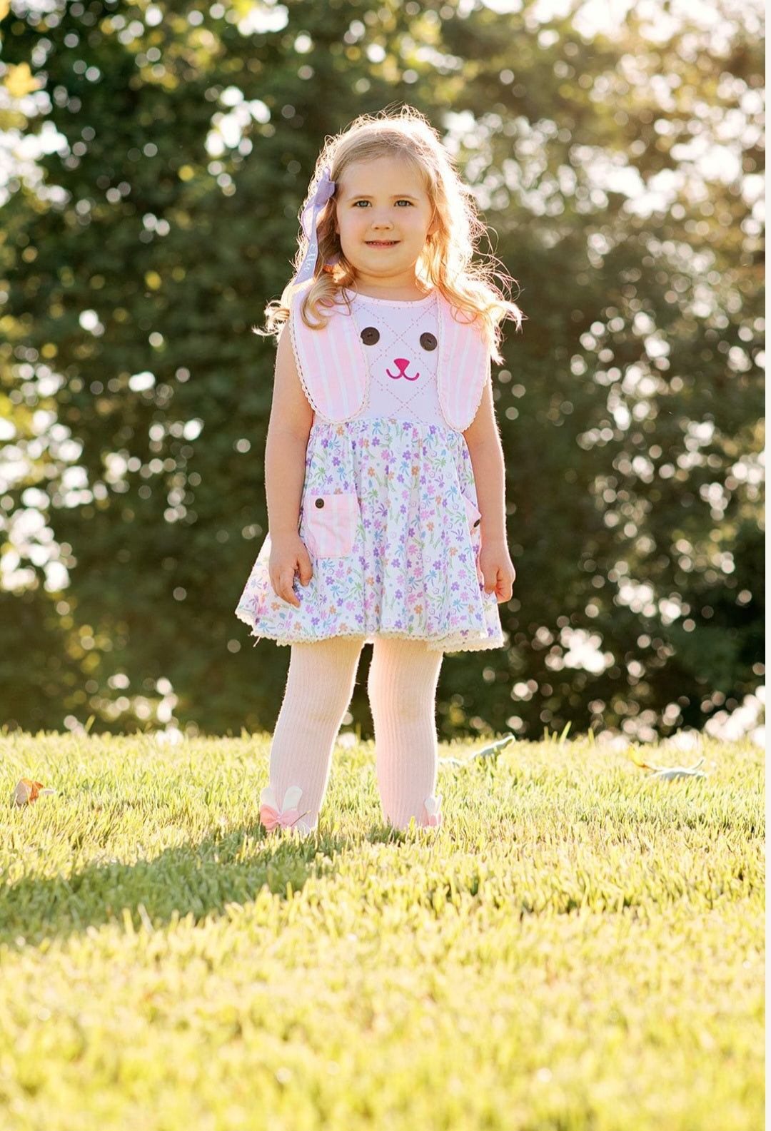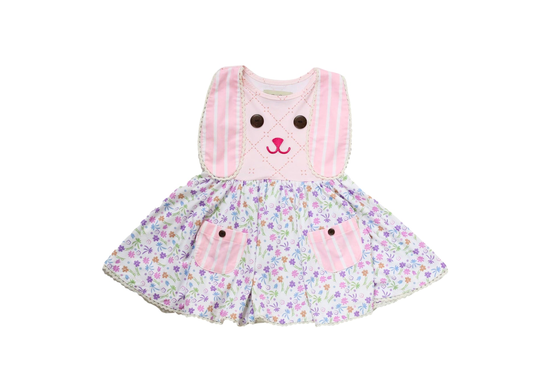 - Knit bunny dress with bunny ears cascading the bodice